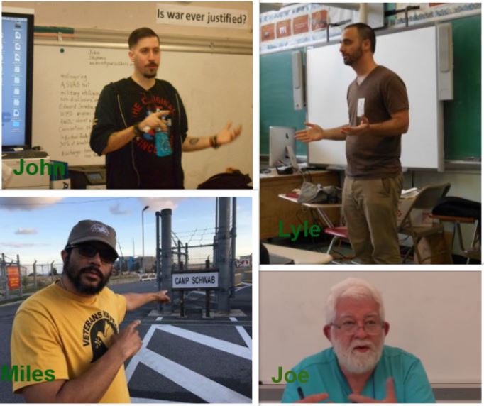 I do the We Are Not Your Soldiers school visits because I believe I am obligated to do something like this as someone who took part in wars that I now believe are unjust. I really do believe that the kinds of classes or sessions that I am involved with in these schools makes an impact on these students. It might not convince them immediately to agree with me on everything I am saying but I really do believe I am planting a seed of doubt in most of their minds. What we need now in our society, more than anything else, is for the people in the United States, particularly our young people, to start seriously questioning the politics and policies of our government as well as all powerful corporate institutions.